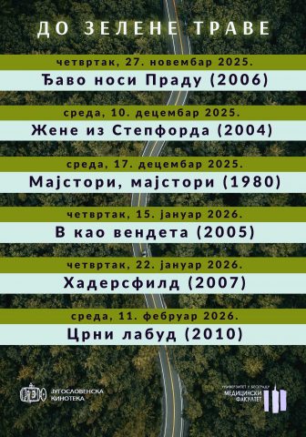 Позивамо вас да учествујете у догађајима које смо припремили, а чији се распоред налази у наставку обавештења. У циљу иновирања наставе из предмета Социјална медицина, током зимског семестра академске 2025/2026. године, договорене су пројекције одабраног филмског материјала из Архива Југословенске кинотеке. Приказивање филмова у оквиру наставе је препознат метод креативног учења и може значајано допринети разумевању наставних садржаја.