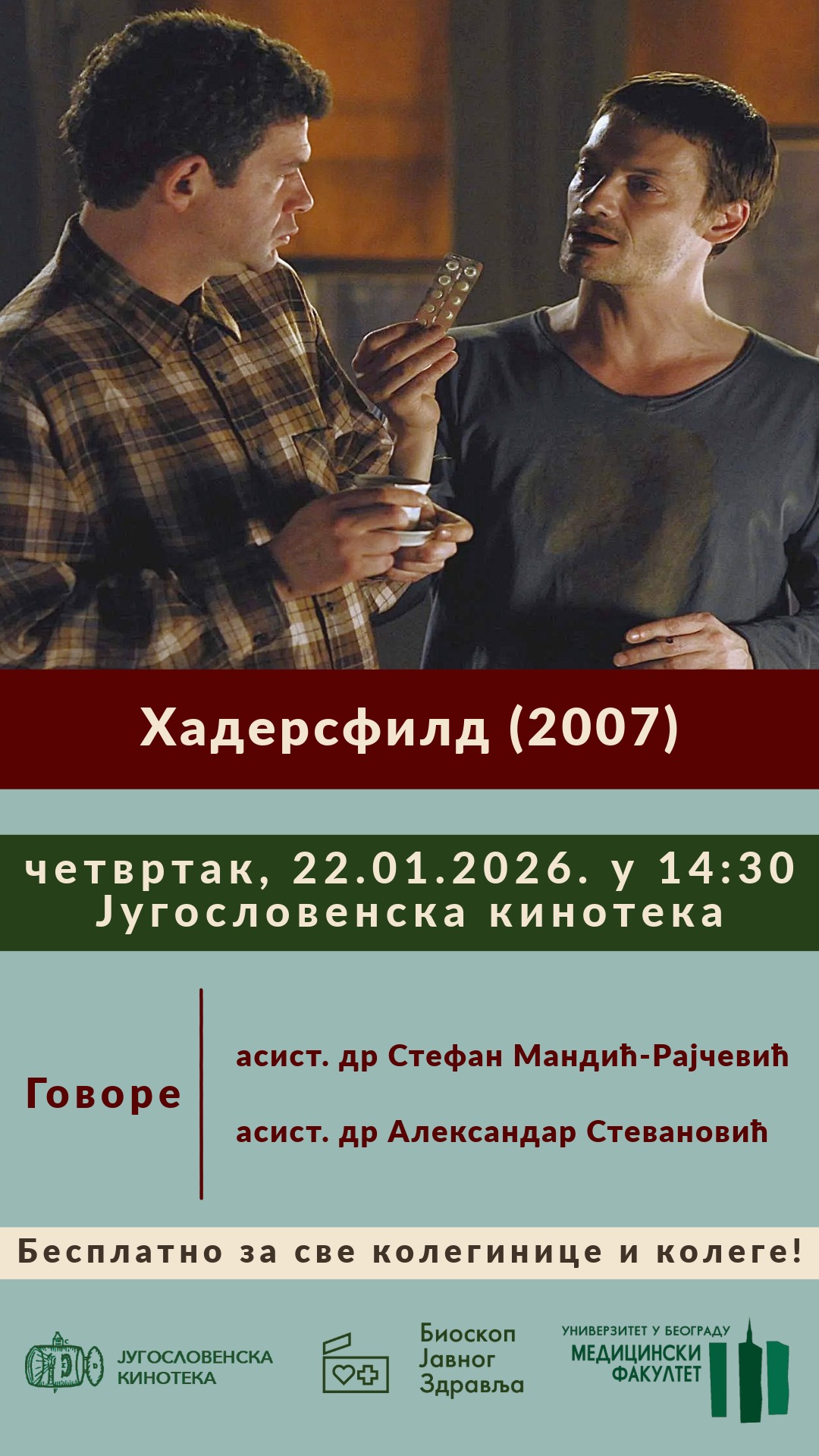 Пројекција филма “Хадерсфилд” одржаће се у четвртак, 22.01.2026. године у 14:30 у сали Макавејев Југословенске кинотеке (Узун Миркова 1).
